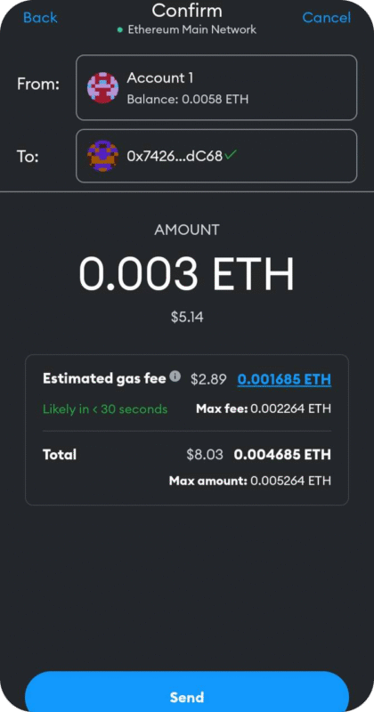 6. After the permission is granted, click send to execute the transaction. The moment your payment is received, your receipt will be displayed, and the item(s) will be delivered to you in a few minutes. You will also receive an email confirming your purchase.